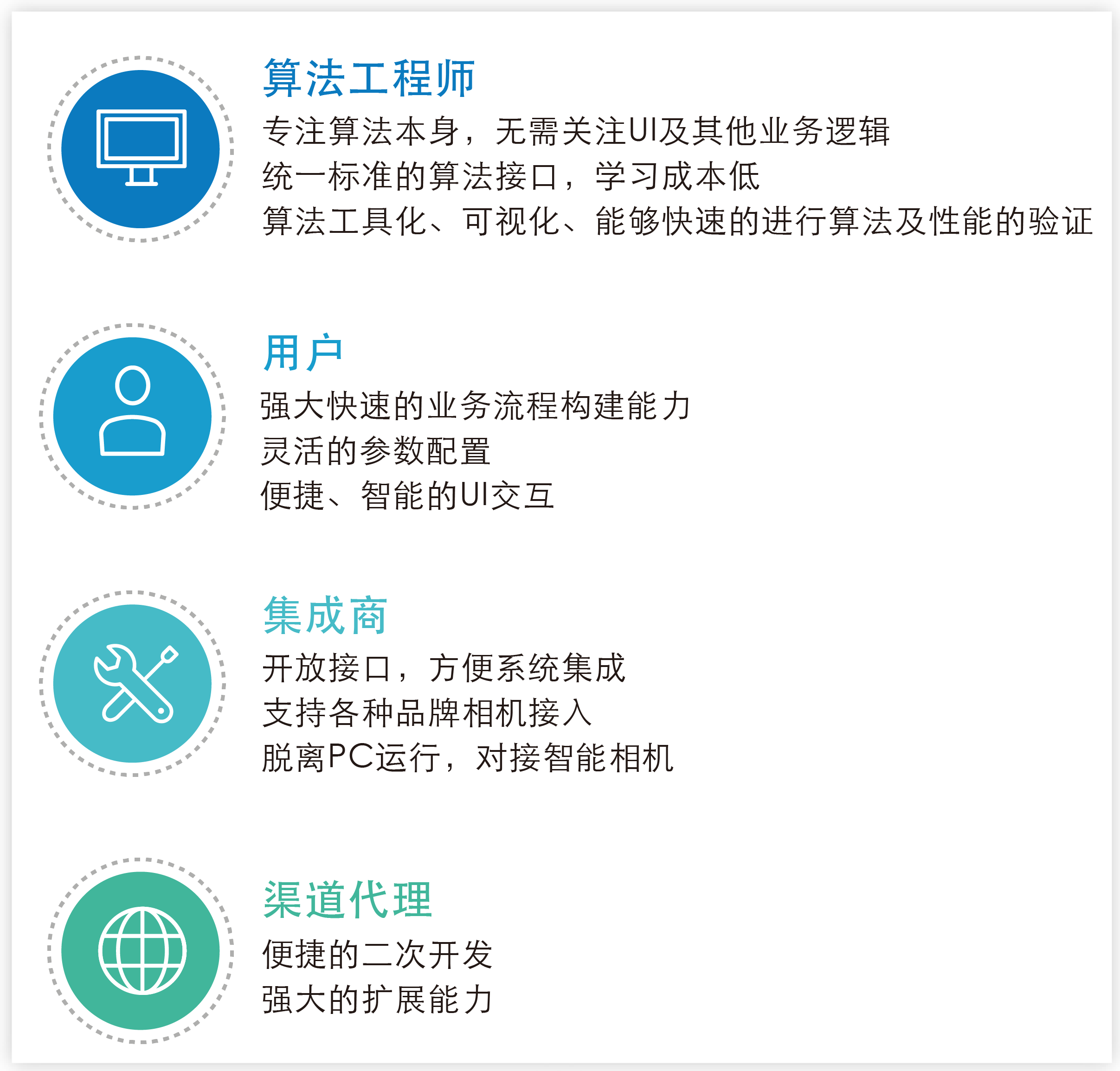 · 强大的兼容性,支持海康、大华、Basler、Dalsa等国内外主流相机品牌;支持网口、USB、Cameralink接口